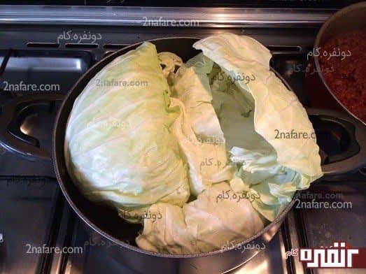 یا اینکه میتوانیم قسمت چوبی کلم یعنی مغز کلم را بصورت یک مخروطی با کارد تیزی در آوریم و داخل آب جوش قرار دهیم تا برگها کمی نرم شود سپس از آب بیرون آورده و به آرامی برگها را جدا می کنیم.