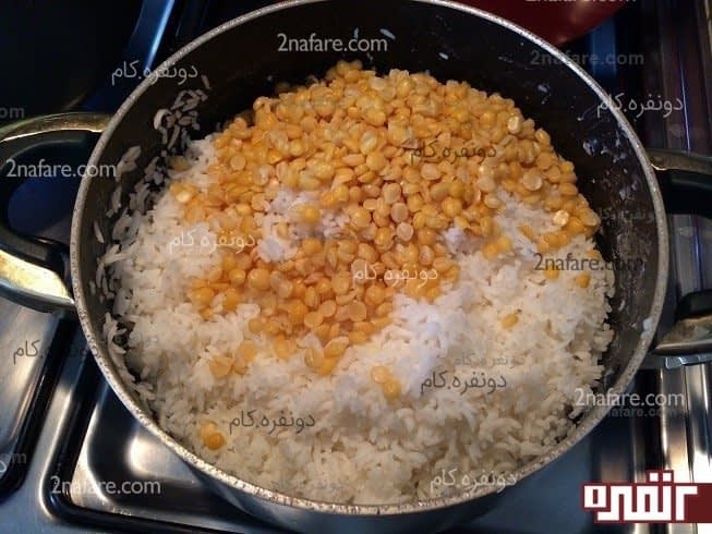 برنج را شسته در یک قابلمه ریخته با کمی نمک میگذاریم تا نیم پز شوند. لپه را هم شسته ومی پزید. سبزی ها را خوب پاک کرده شسته و خرد کنید.