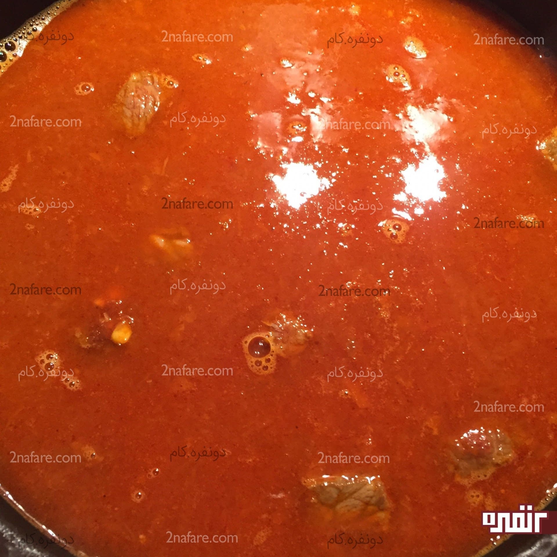 - گوشت رو قبل از ریختن آب خیلی سرخ نکنین چون سفت و ناپز میشه.
