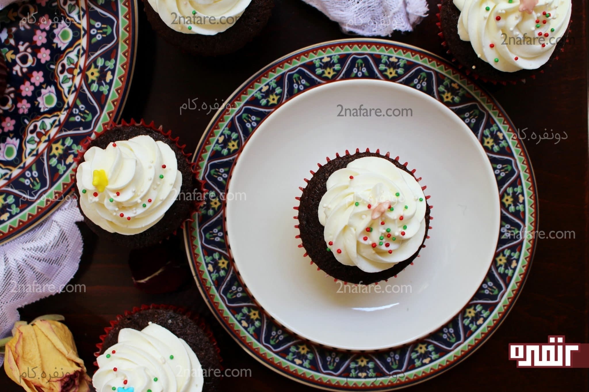 برای فراستینگ کاپ کیک ها از هر کرم دیگه ای یا گاناش و یاخامه شکلاتی هم میشه استفاده کرد. من روی فراستینگم رو هم با ترافل های رنگی تزئین کردم. کاپ کیک ها آماده سرو کردن هستن. برای نگهداری هم داخل ظرف درب دار و داخل یخچال قابل نگهداری هستند. امیدوارم تجربه لذت بخشی برای شما هم رقم بخوره.